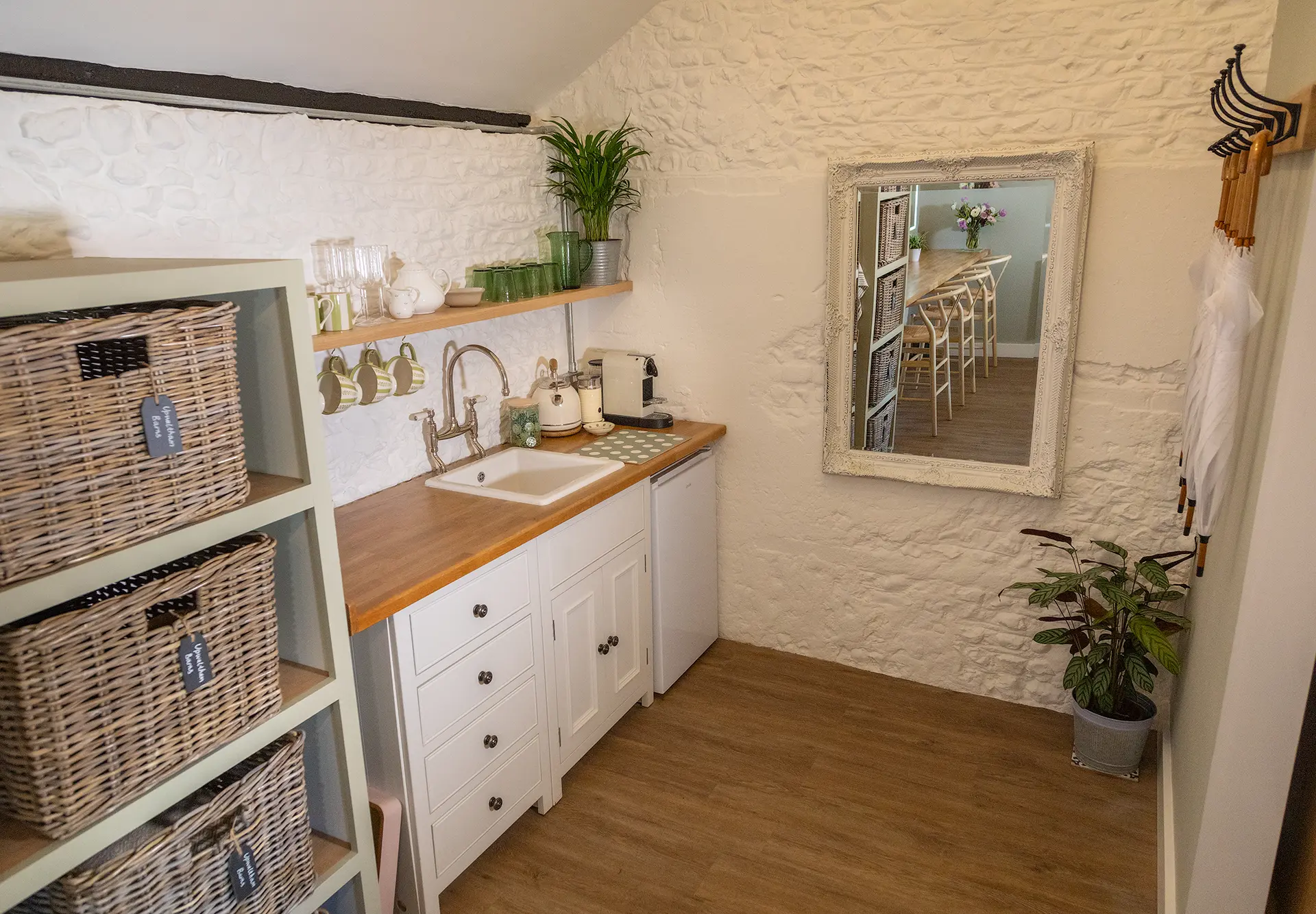 In the Orchard Room, soft natural light pours through the windows, illuminating a space filled with rustic charm and vintage-inspired details. Gentle textures and countryside touches create a relaxed, welcoming feel, while thoughtful additions such as dedicated hair and makeup stations, specialist lighting and cosy seating ensure every moment of getting ready feels effortless. With a nod to its heritage as a place where apples were once stored from the nearby orchard, it offers a serene and characterful setting as the excitement of the day begins to unfold.